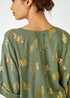 Roman Khaki Metallic Leaf Print Oversized T-Shirt