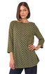 Metallic Textured Knit Tunic Top from Roman. Add some sparkle to your wardrobe with this metallic knit tunic, perfect for the upcoming Autumn and Winter season. Featuring all over metallic thread, this tunic boasts a round neck and chic 3/4 sleeves. The flattering tunic shape falls below the hip, making it ideal for a stylish look. Dress it up with pleather trousers and heeled boots for a party-ready ensemble that will have you turning heads all night long!