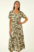 Roman Khaki Petite Abstract Print Tiered Midi Dress