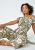 Roman Khaki Petite Floral Print Bardot Jumpsuit