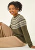 Roman Khaki Petite Metallic Fairisle Jumper