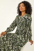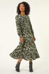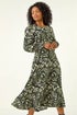 Roman Khaki Petite Printed Shirred Midi Dress - 8