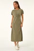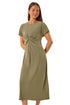 Petite Twist Front Midi Dress from Roman. Stay effortlessly chic with our Twist Midi Dress this Autumn/Winter season. With a simple round neck and short sleeves, this comfortable stretch dress features a flattering twist front detail. Cut to a midi length, this dress ensures a sleek and stylish silhouette, perfect for any occasion. Pair with trainers for a casual yet put-together look!