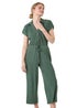 Plain Ribbed Stretch Jersey Jumpsuit from Roman. Elevate your Spring wardrobe with this textured cropped jumpsuit! Made in a stretch jersey material and buttoned down the front, this short sleeve jumpsuit features a subtle ribbed texture and cropped straight legs for a flattering fit. It has a sweet tie detail to the waist and is easy to slip on with its functional buttons and drawstring. Dress up with some heeled sandals and a cute clutch for those warm Summer evenings or wear casually for an everyday style statement.