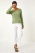 Scallop V-Neck Knit Jumper from Roman. Get ready to elevate your Spring Summer wardrobe with this charming scallop v-neckline jumper. Featuring a delightful texture detail, this jumper is perfect for adding a touch of elegance to your outfits. The long sleeves provide extra cosiness on those cooler days. Pair this feminine piece with your favourite jeans and trainers for a comfortable everyday look!