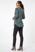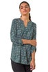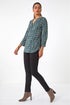 Textured Abstract Print V-Neck Stretch Shirt from Roman. Catch attention this fall season in our stylish abstract print v-neck shirt. Featuring a notch v-neckline and a front button fastening with 3/4 tabbed sleeves with shoulder pleats add a touch of flair. This shirt is made from a comfortable stretch jersey fabric adorned in a striking abstract print with textured detail, perfect for everyday wear. Style with jeggings and ankle boots for a fashionable outfit!