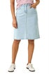 Cotton Denim Stretch A line Skirt from Roman. Add some fun colourful denim to your Spring collection with this cotton denim skirt. Cut from a cool and comfortable, cotton denim fabric, this skirt has a slight stretch for a flattering and smooth fit. Secured with a zip fly and button fastening, this skirt features functional belt loops and practical back patch pockets. Pair with printed bardot tops for fun Summer style or add a bodysuit, longline lightweight cardigan and trainers for a day of sightseeing!