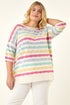Curve Wave Stripe Jumper from Roman. Elevate your knitwear collection with this chic wavy stripe jumper for the Spring/Summer season. Adorned with an all-over wavy knit detail, this trendy jumper features a classic round neckline and flattering 3/4 sleeves. Finishing at the low hip, this versatile piece is perfect for casual days out. Pair with your favourite jeans and trainers for a stylish off-duty look that's both comfy and fashionable.