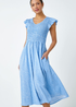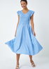 Roman Light Blue Ditsy Print Shirred Midi Dress