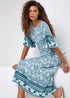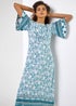 Roman Light Blue Floral Border Print Midi Dress