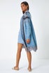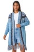 Roman Light Blue Fringed Hem Longline Cardigan