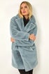 Roman Light Blue Petite Longline Pocket Fur Coat