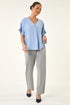 Roman Light Blue Petite One Buttoned V-Neck Top