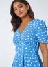 Roman Light Blue Polka Dot Ruched Sleeve Midi Dress