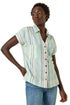 Verticle Stripe Short Sleeve Shirt from Roman. Sail into the sunny season with this charming stripe short sleeve shirt. Featuring an all over vertical stripe print, this shirt boasts a flattering V-neckline and short grown on sleeves, perfect for warmer weather. Complete with a stylish collar and practical pockets on the bust, this shirt is designed with a full button opening for easy wear. Pair with shorts and sandals for a cool and casual look that's ideal for beach days or picnics in the park!