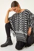 Tribal Pattern Fringe Poncho Jumper from Roman. Experience ultimate cosiness with our tribal pattern fringe poncho. Knitted from a mix of cotton fabrics, this trendy piece effortlessly combines fashion and comfort. The flattering slash neckline and loose jumper shape provides a relaxed fit. Finished with playful fringed details at the hem, this poncho jumper is perfect for casual days out. Style with relaxed denim and boots for an on-trend ensemble!