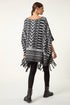 Roman Light Grey Tribal Pattern Fringe Poncho Jumper