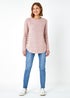 Roman Light Pink Button Detail Curved Hem Jumper