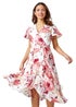 Floral Print Wrap Stretch Dress from Roman. Step into the new season is style with this striking, floral print, wrap dress. Designed in a flattering mock wrap shape, this piece features a feminine v-neckline and delicate angel sleeves.Cut from a lightweight, stretch jersey fabric this dress is finished with a self-tie fabric belt for shape and a fun frill hem along the skirt. Falling to a knee length this dress is perfect for all your Spring and Summer occasions, simply add heels and a smart jacket to complete the look!