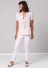Learn moreFrill Detail V-Neck Top from Roman. Frills to thrill! Embellished with gorgeous ruffle detailing at the front and around the neckline, this feminine top can be dressed up for any occasion. This v-neck has an elasticated shirred short sleeve and is the perfect addition to your suitcase for your travels. Finish the look with white denim and sandals or switch to colourful cropped trousers for the perfect summer holiday ensemble.