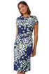 Floral Print Shift Stretch Dress from Roman. Shift dresses are a must-have staple for your wardrobe and this one is adorned in a pretty, floral print. Cut from a comfortable stretch jersey fabric, this dress features a modest round neckline and simple short sleeves. Adorned in a textured placement print, this piece boasts flattering ruching at the side waist making for a complimentary fit throughout. Perfect for work or play simply add courts and a smart jacket to accentuate this piece perfectly!