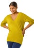 Roman Lime Plain V-Neck Stretch Longline Jumper