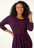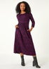 Roman Magenta Petite Swirl Print Stretch Midi Dress