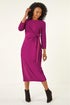 Roman Magenta Petite Tie Waist Stretch Midi Dress