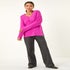 Roman Magenta Plain V-Neck Fluffy Knit Jumper