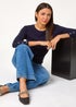 Roman Midnight Blue Diamante Button Scallop Edge Jumper