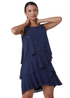 Roman Midnight Blue Embellished Chiffon Frill Swing Dress