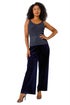 Roman Midnight Blue Petite Wide Leg Velvet Stretch Trouser