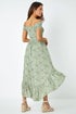 Leaf Print Shirred Bardot Dress from Roman. Spring into the new season with this stylish bardot boho dress. The floaty midi length skirt features a dramatic high low hem and frill tier detail to add feminine flair to your outfit. Inspired by the bohemian trend, this timeless fit and flare dress has a comfortable shirred bodice that is so easy to pull on and a stretchy gathered waistline. Topped off with button details, this ditsy print dress is perfect for everyday dressing throughout Summer, just add a denim jacket!