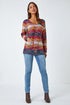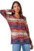 Mixed Yarn Pocket Detail Jumper from Roman. Give a nod to the boho trend as we enter the Autumn Winter with this vibrant soft knit jumper. Detailed with a feminine v-neckline, functional pockets and cosy full-length sleeves, this casual shape is great for everyday wear. Its mixed yarn texture adds interest throughout making it the perfect piece to pair with relaxed denim and trainers for a fun everyday style!