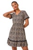 Roman Natural Animal Print Embroidered Stretch Short Dress