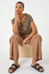 Animal Print Shell Top from Roman. Unleash your wild side with this animal print shell top. The classic round neckline and short grown-on sleeves add a timeless touch to this top, crafted from a comfortable woven fabric. Featuring an animal print, this top has a tee shape with a stylish twist. Pair with a denim jacket and jeggings for a complete look that's perfect for Spring and Summer days out!