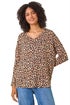 Learn moreAnimal Print V-Neck Tunic Stretch Top from Roman. Add prints to your Autumn Winter wardrobe with our printed long-sleeve tunic top. Featuring a feminine v-neckline and cosy full-length sleeves, this tunic offers a comfortable and stylish look. The loose fit and drop shoulder silhouette make it perfect for casual daywear, while the all-over animal print adds a timeless touch. Cut from a comfortable stretch jersey fabric, this tunic is an effortless choice for adding some fun to your everyday style. Pair with jeans and trainers for a chic and relaxed outfit.