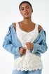 Cotton Crochet Knit Vest Top from Roman. Tap into care-free Summer vibes with this charming knitted vest. Crafted from a cooling cotton crochet, this vest features a scallop detail at the hemline to add an ornate touch. It features a classic round neckline and sleeveless design, making it ideal for layering or wearing on its own. For a sweet Summer look, pair it with a denim jacket, shorts and sandals for a stylish and comfortable holiday ensemble.