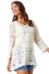 Cotton Crochet Tunic Top from Roman. A perfect beach cover up for your upcoming holiday, this crochet tunic top is a classic addition to add to your suitcase staples. Cut from a cool 100% cotton, crochet fabric this piece features a feminine v neckline and 3/4 length, loose bell sleeves. Intricate crochet offers detail and interest throughout. The tunic length makes it perfect to pair over swimwear and shorts!