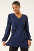 Abstract Print V-Neck Tunic Top from Roman. Step out in style this Autumn Winter season with this chic abstract print tunic. Crafted from a comfortable stretch jersey fabric, this tunic features a flattering v-neckline and long sleeves for a cosy touch. The unique print adds a trendy twist to the look. Cut in a tunic shape, this top is perfect for all-day comfort and style. Pair it with wide leg jeans and ankle boots!