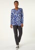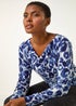 Roman Navy Animal Print Cowl Neck Tunic Top
