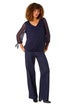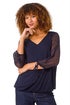 Roman Navy Burnout Print V-Neck Overlay Mesh Top