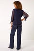Burnout Print V-Neck Overlay Mesh Top from Roman. Set the trend this Autumn/Winter in this stylish burnout overlay top. This v-neck mesh top features a unique blouson effect at the hem band, adding a touch of sophistication to the piece. Complete with a contrast jersey hem band, ties on the sleeves, and neck binding, this top exudes elegance. Pair with tailored trousers and heeled boots for a fashionable look that will turn heads wherever you go!