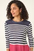 Roman Navy Contrasting Stripe Print Top