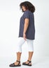 Roman Navy Curve Ditsy Spot Print V-Neck Stretch Top