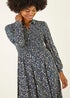Roman Navy Ditsy Floral Print Shirred Midi Dress