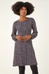 Ditsy Floral Print Stretch Dress from Roman. Liven up your Winter wardrobe with prints this season. Cut from a stretch jersey for a comfortable everyday fit, this knee-length dress is adorned in a ditsy floral print that gives it a playful feel. Designed with a classic round neckline, cosy full-length sleeves and a figure-flattering empire waistline, this style is gathered for a complimentary fit. It has comfy elasticated cuffs and an easy pull-on shape. Wear with thick tights and chunky boots for a lively seasonal style.