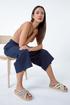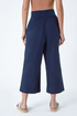 Roman Navy Elastic Waist Wide Leg Cotton Cropped Culottes