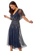 Roman Navy Embellished Angel Sleeve Midi Dress