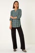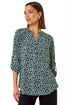 Floral Print 3 Button Shirt from Roman. Flaunt your floral finesse with this chic all-over print shirt. The notch neck design is enhanced with shoulder pleat detail, while tab fastenings on the 3/4 sleeves add a touch of elegance. Crafted from stretchy jersey fabric with a vibrant print, this shirt is perfect for the Autumn/Winter season. Pair it effortlessly with jeggings and ankle boots for a stylish and comfortable look!